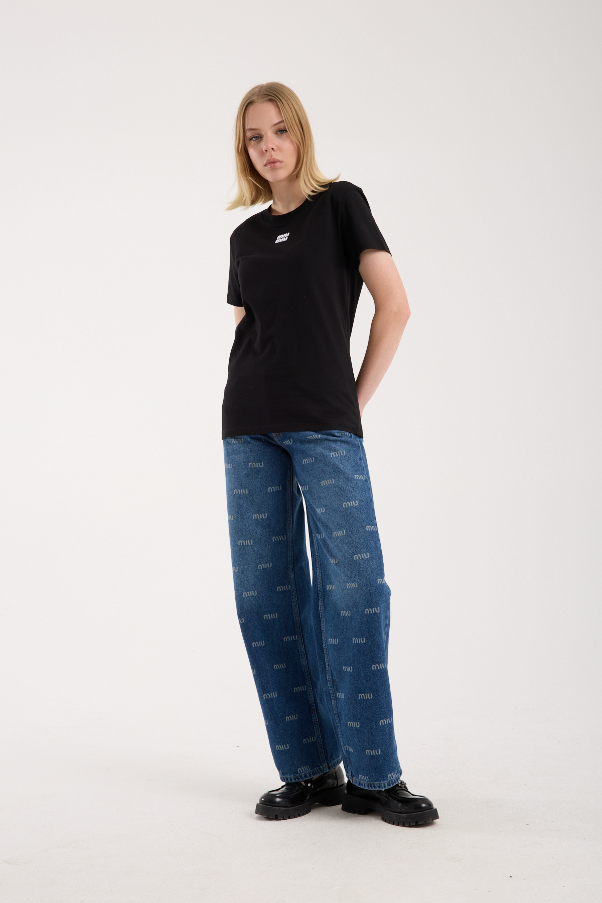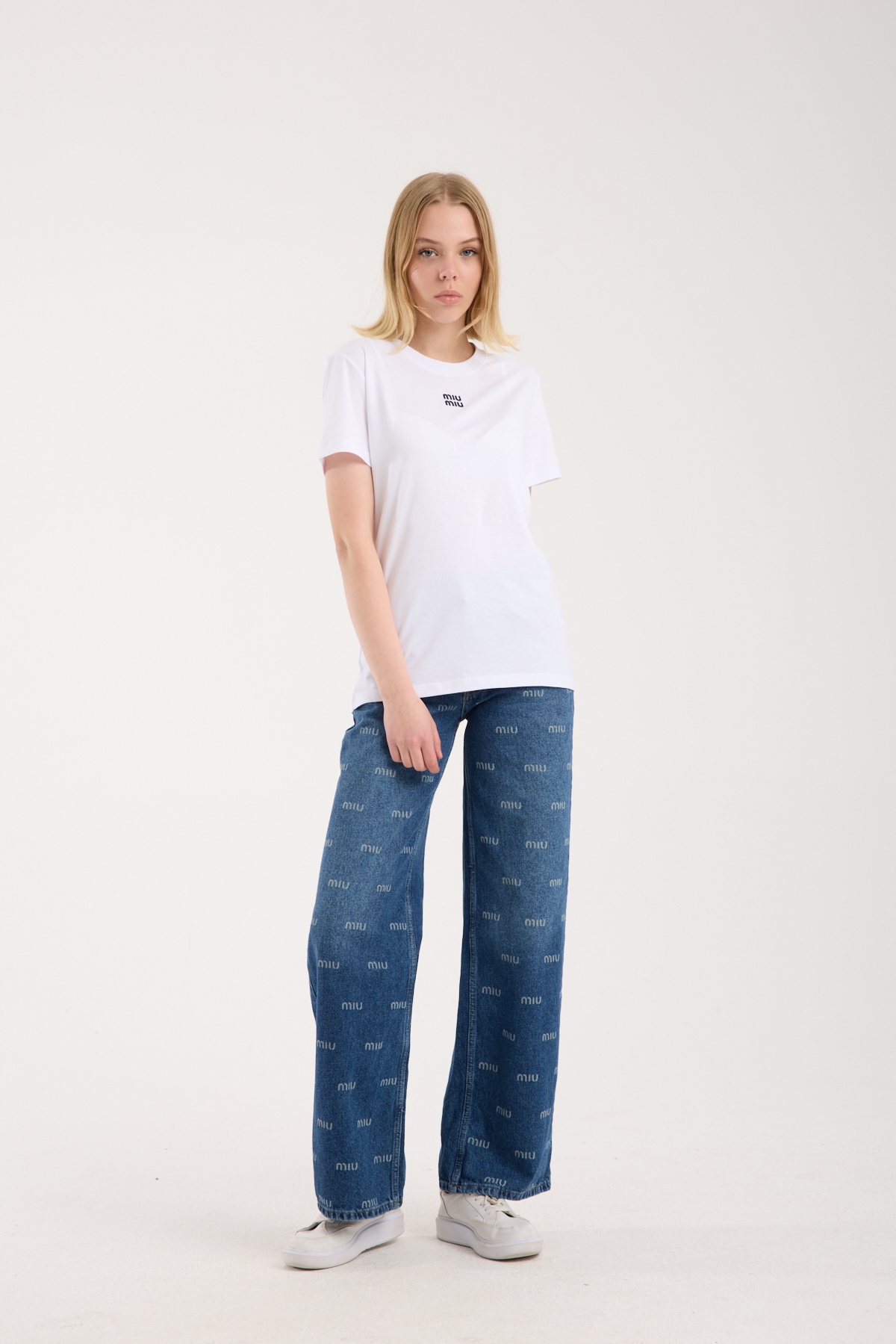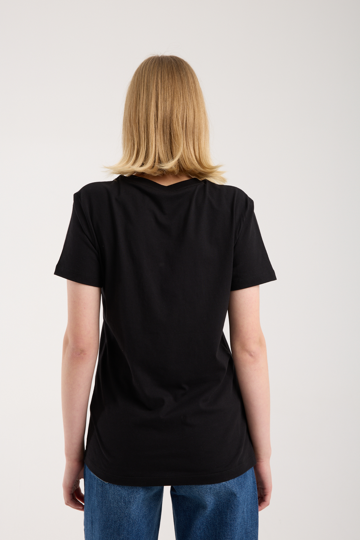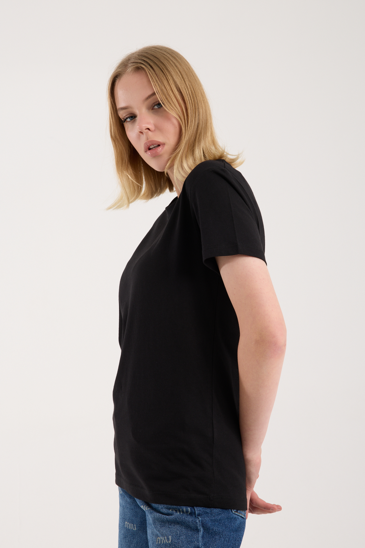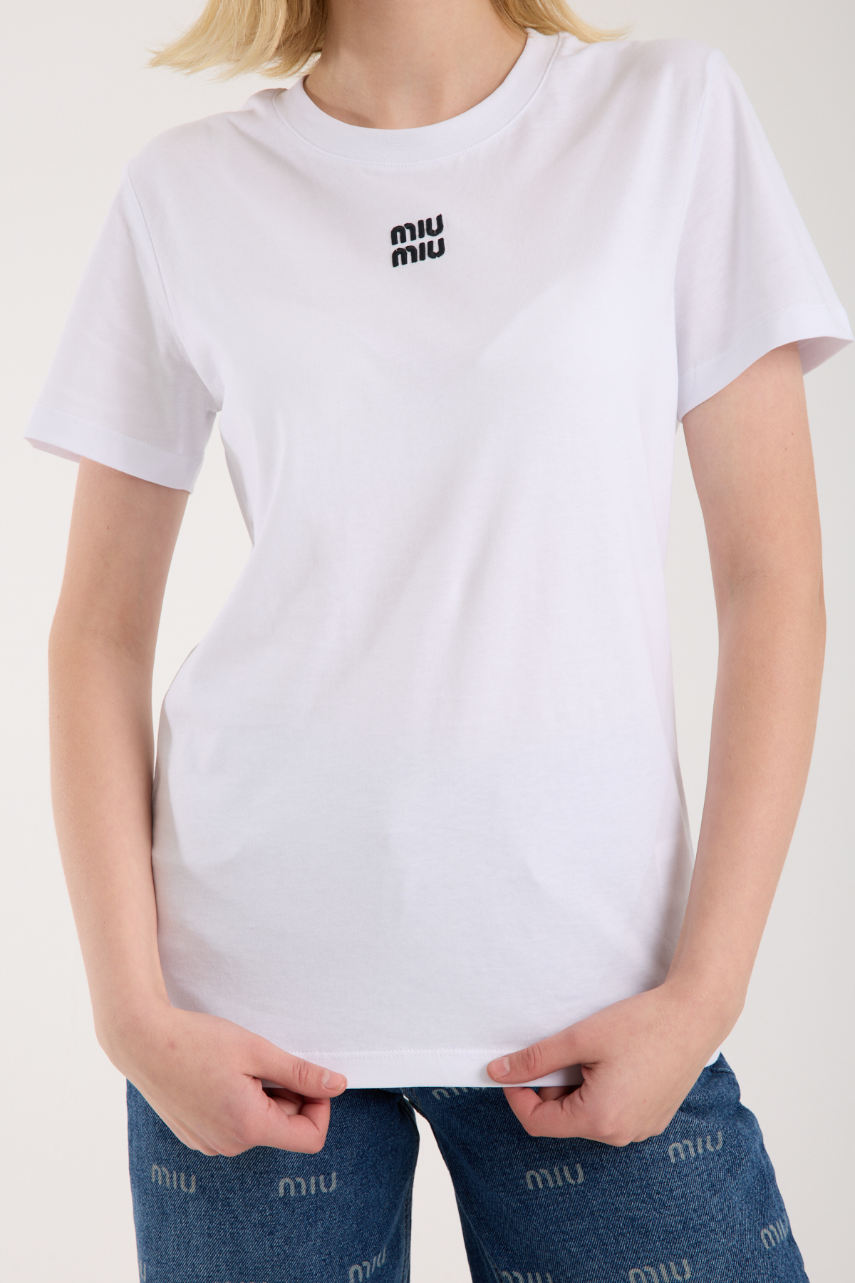 Bisiklet yaka, logo nakış işlemeli t-shirt.