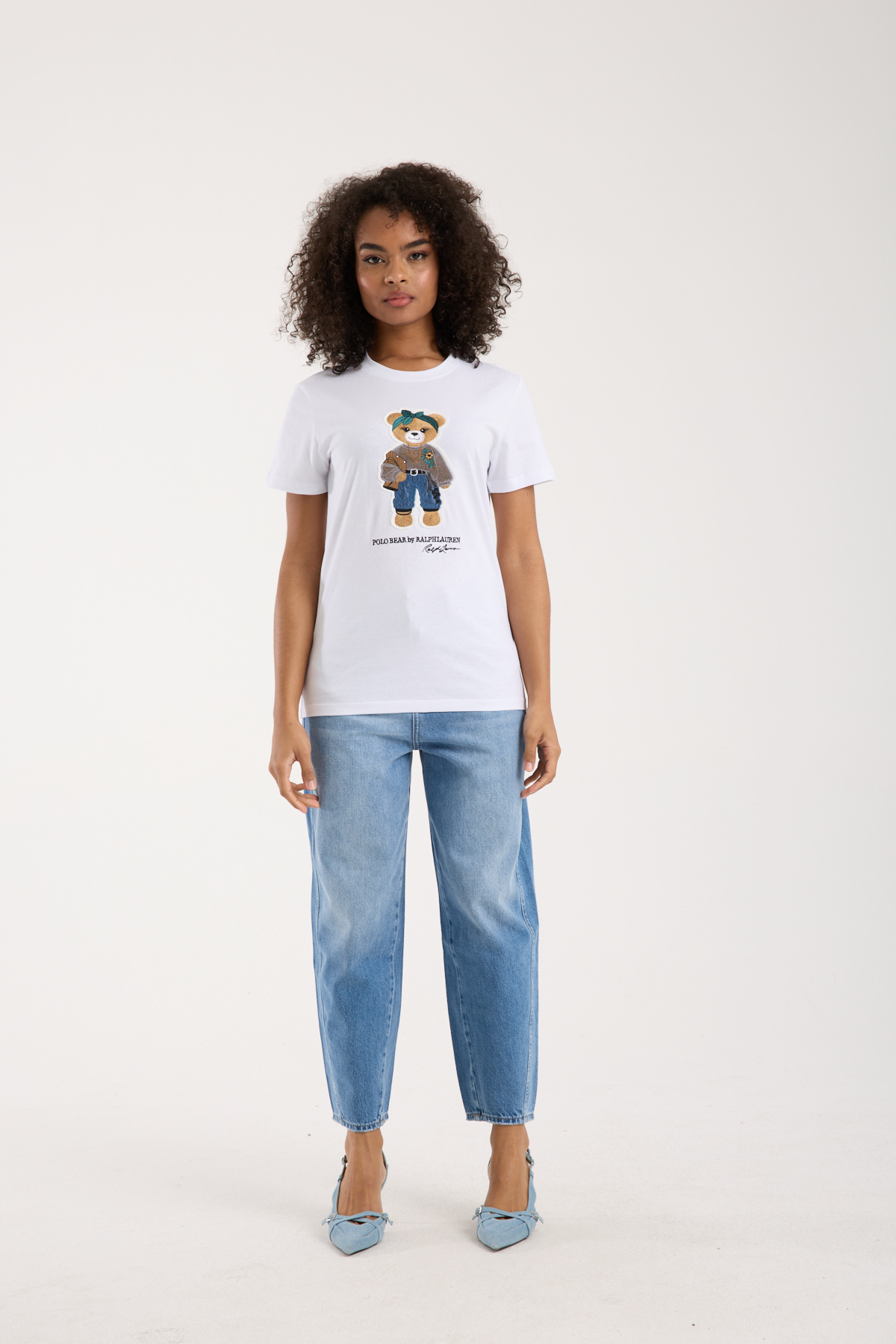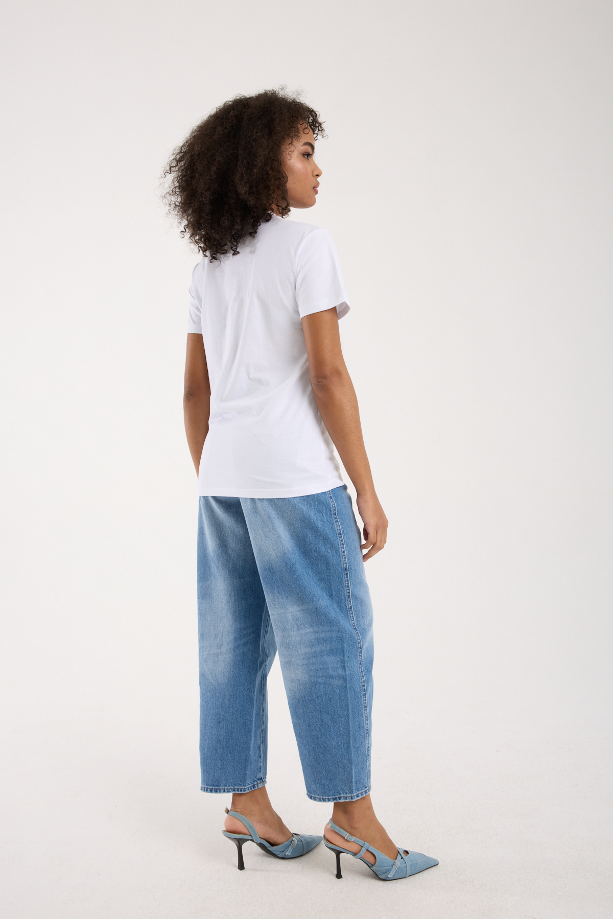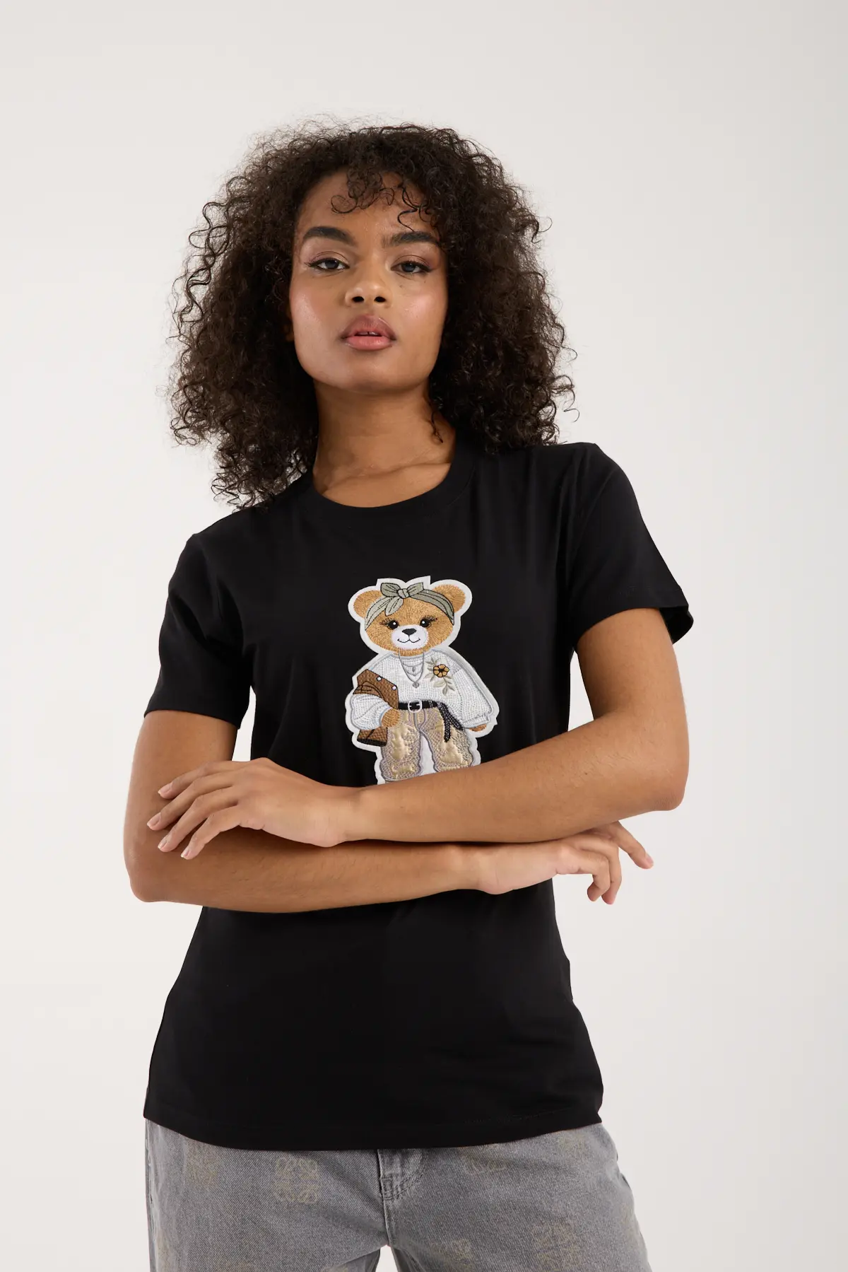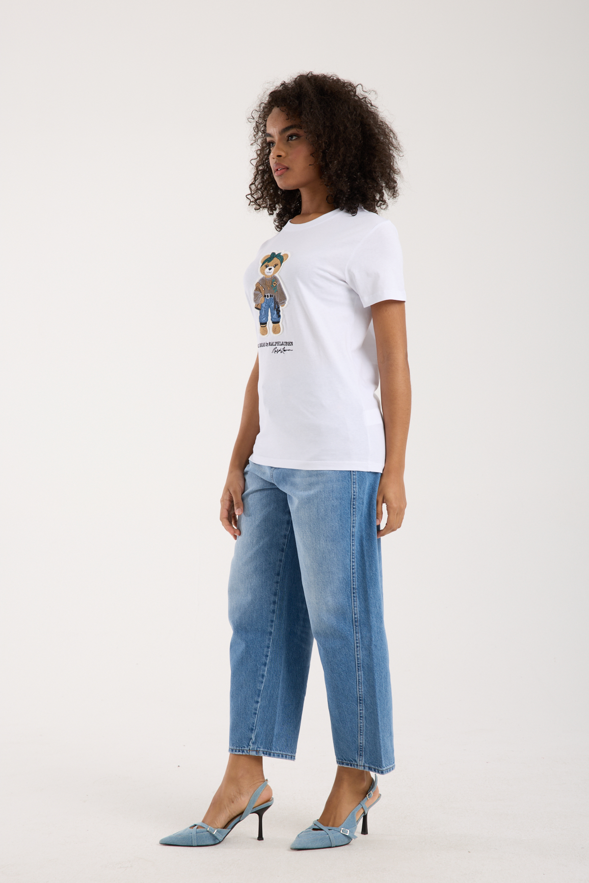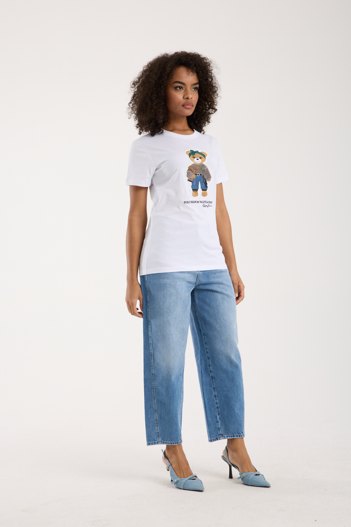 Bisiklet yaka, logo nakış işlemeli t-shirt.