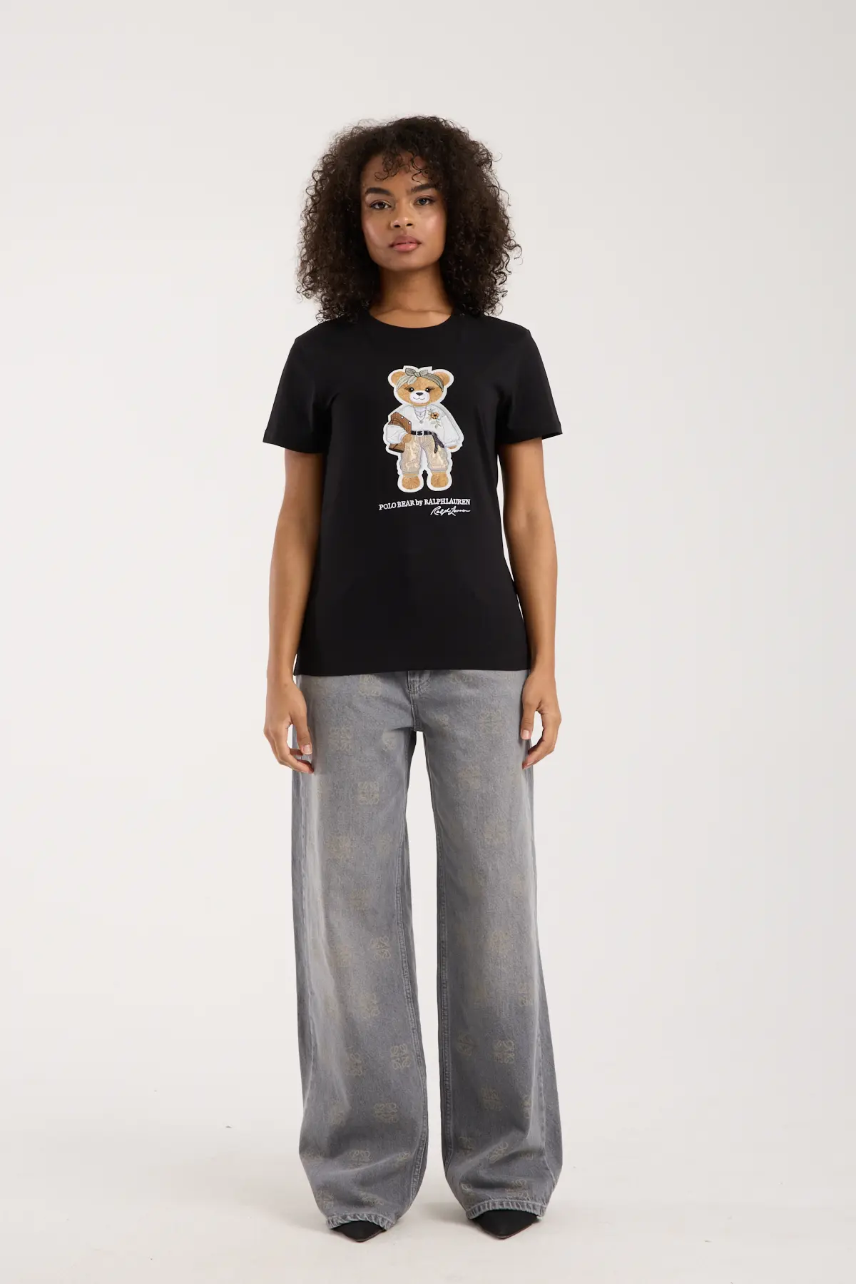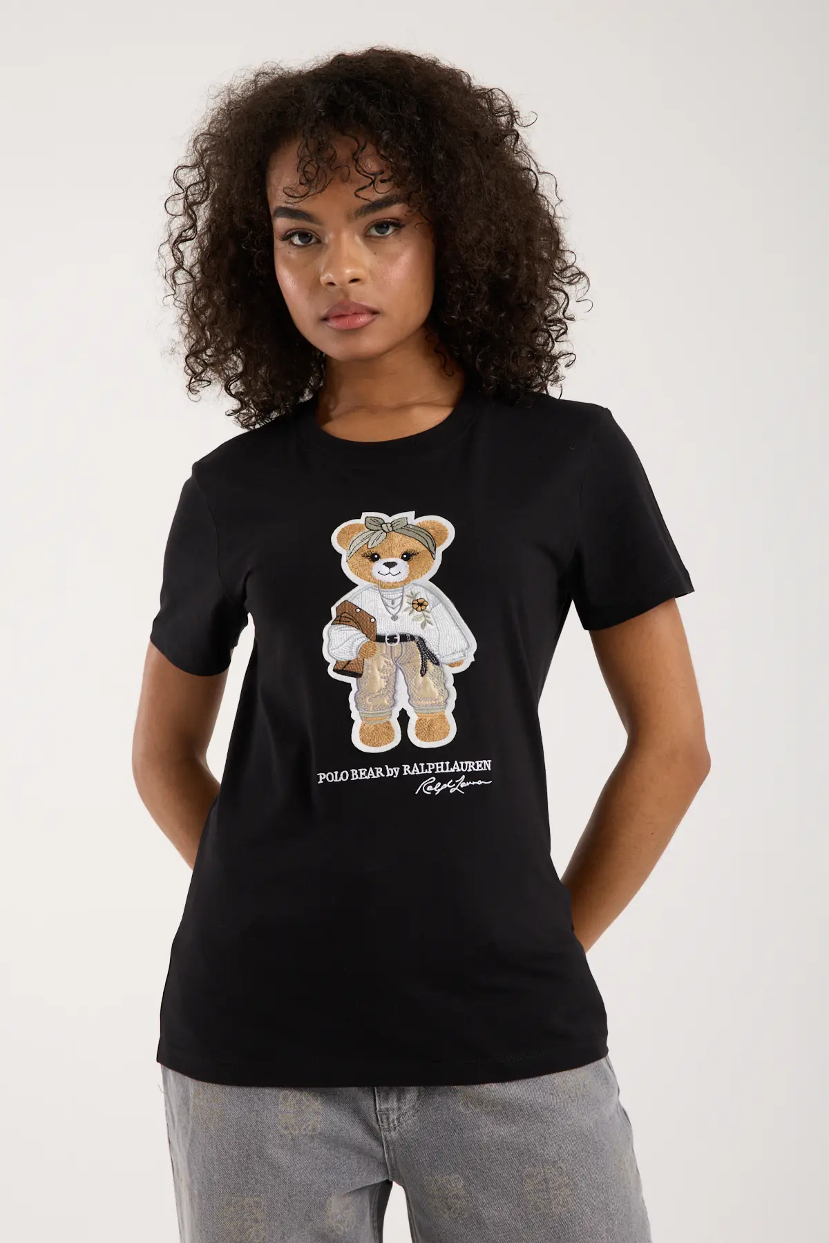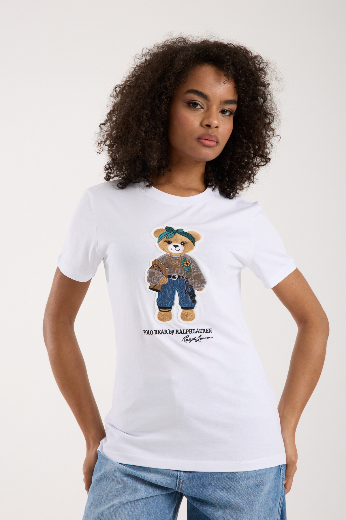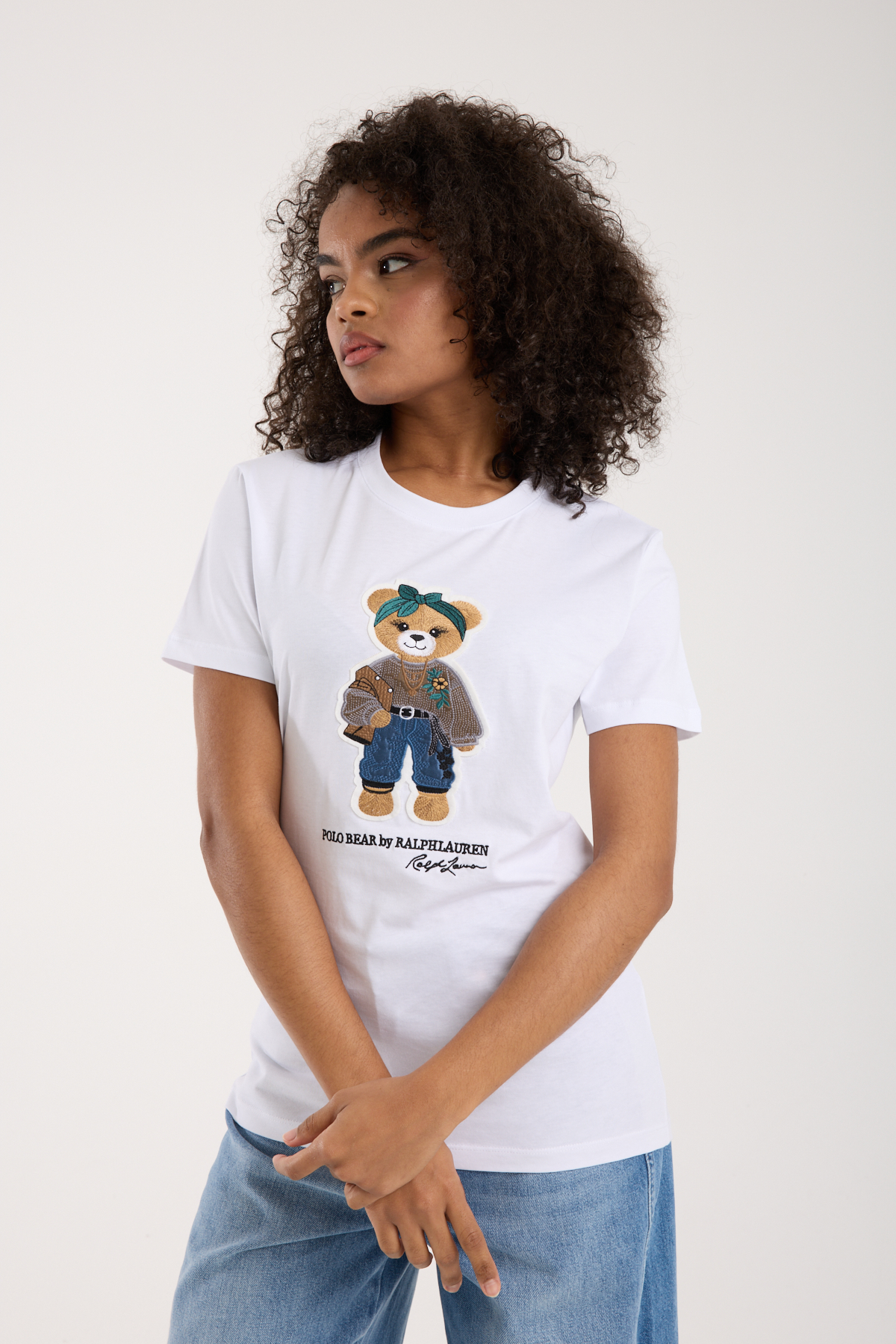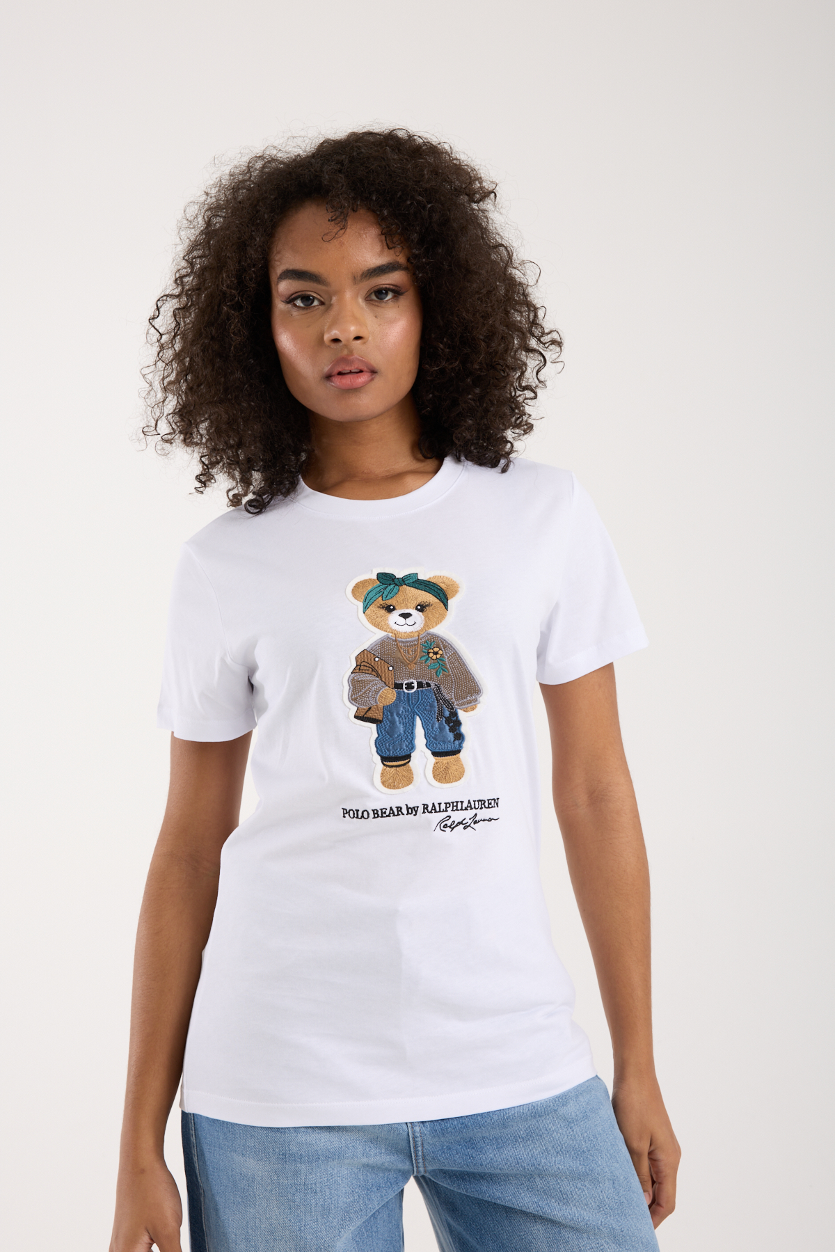 Bisiklet yaka, logo nakış işlemeli t-shirt.