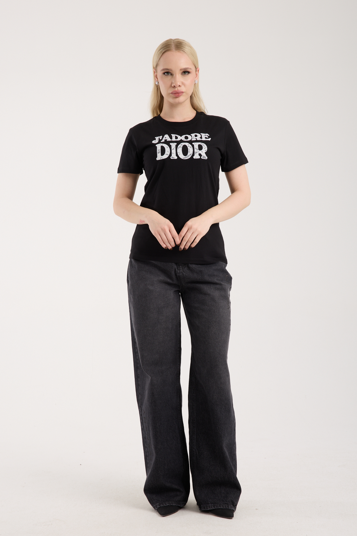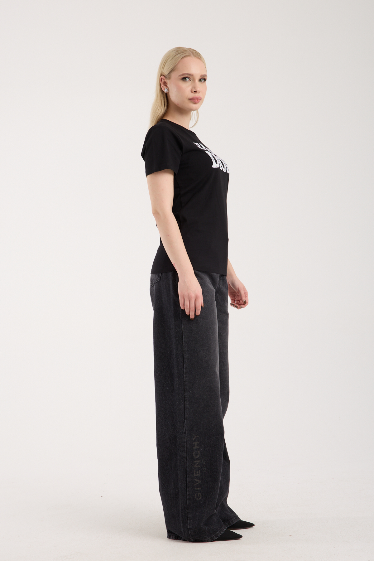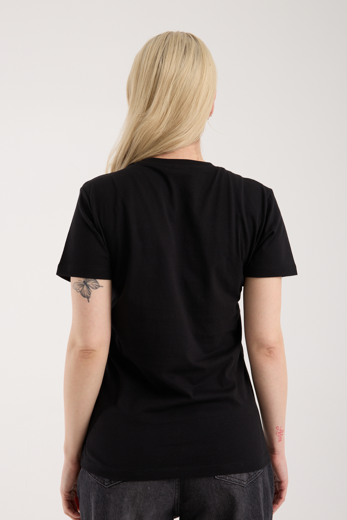 Bisiklet yaka, logo nakış işlemeli t-shirt.