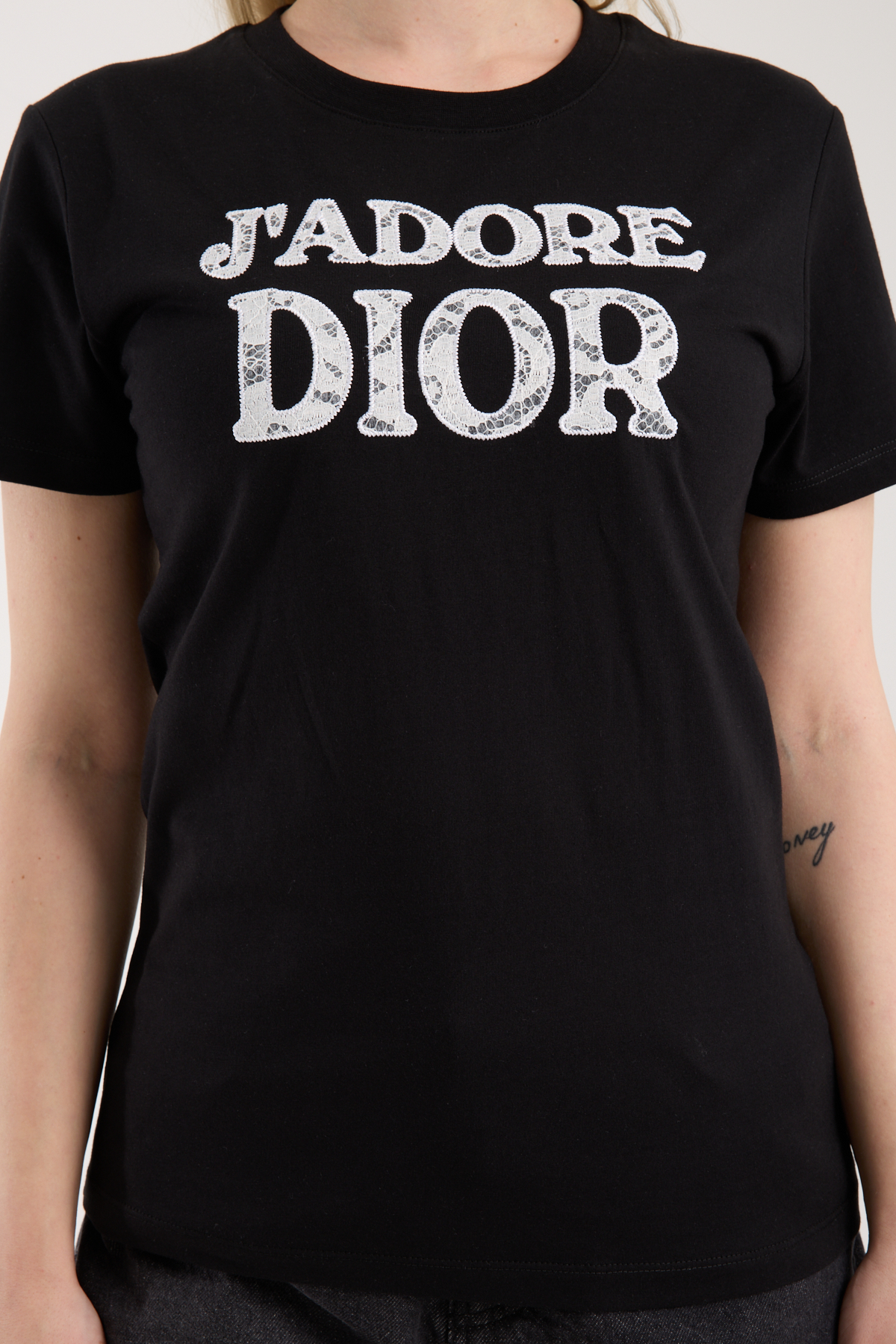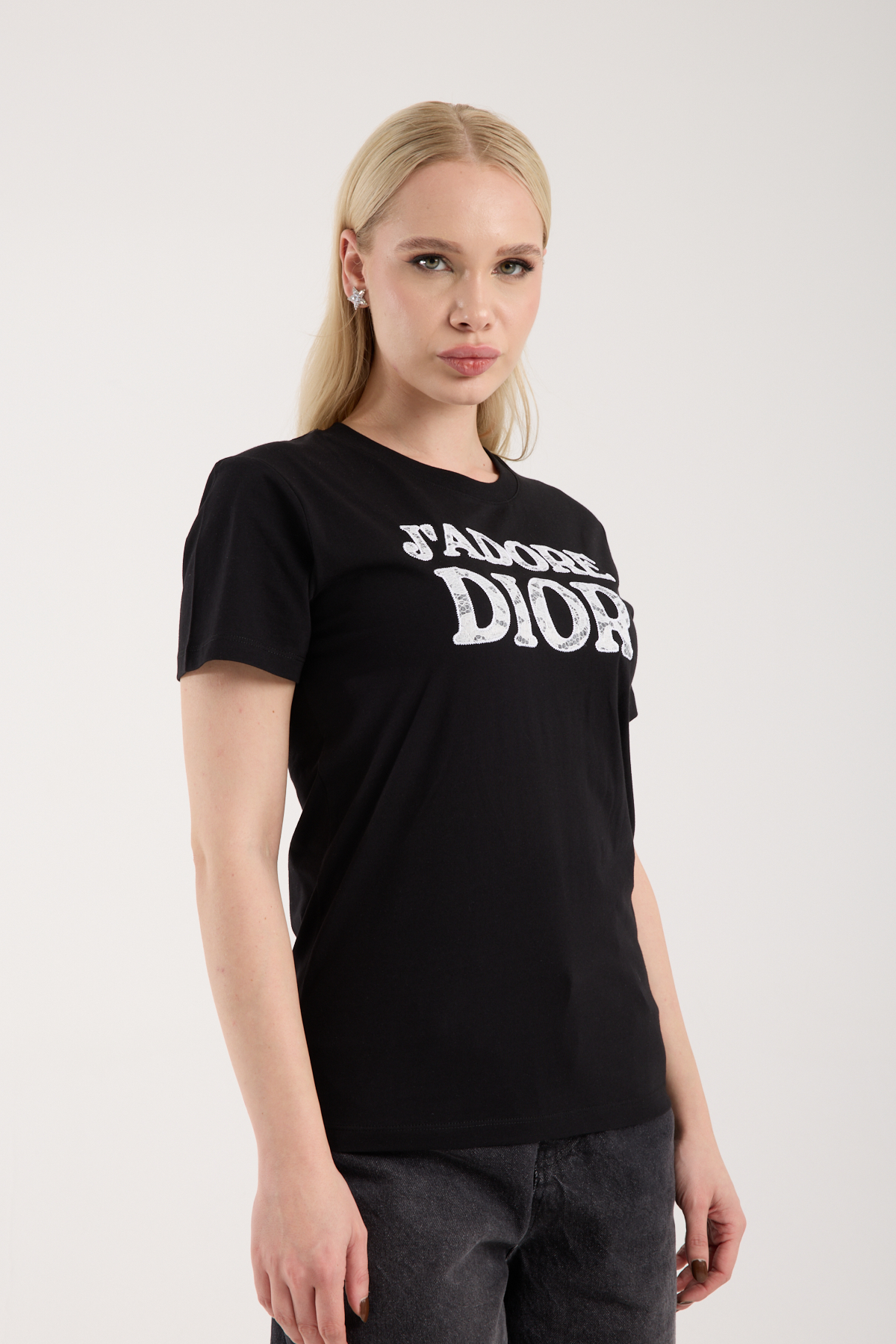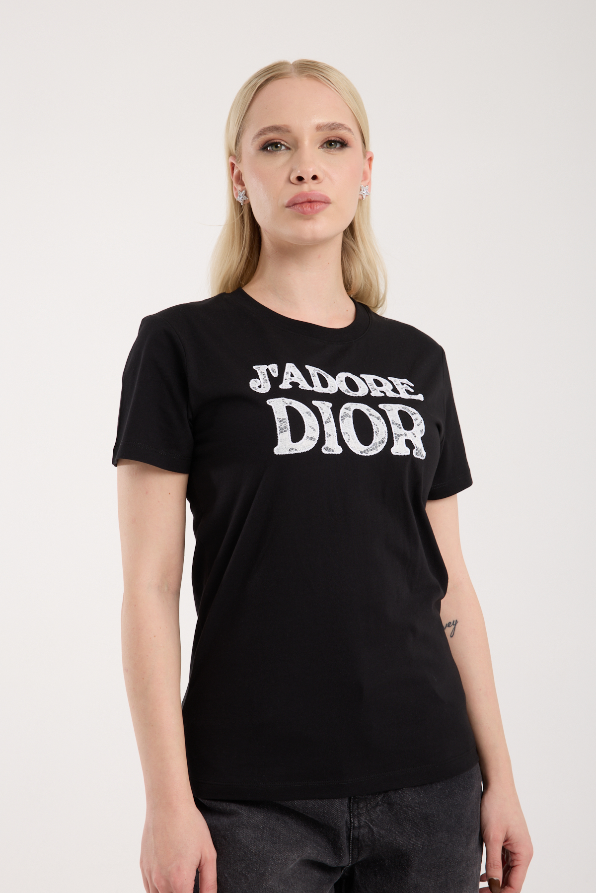 Bisiklet yaka, logo nakış işlemeli t-shirt.