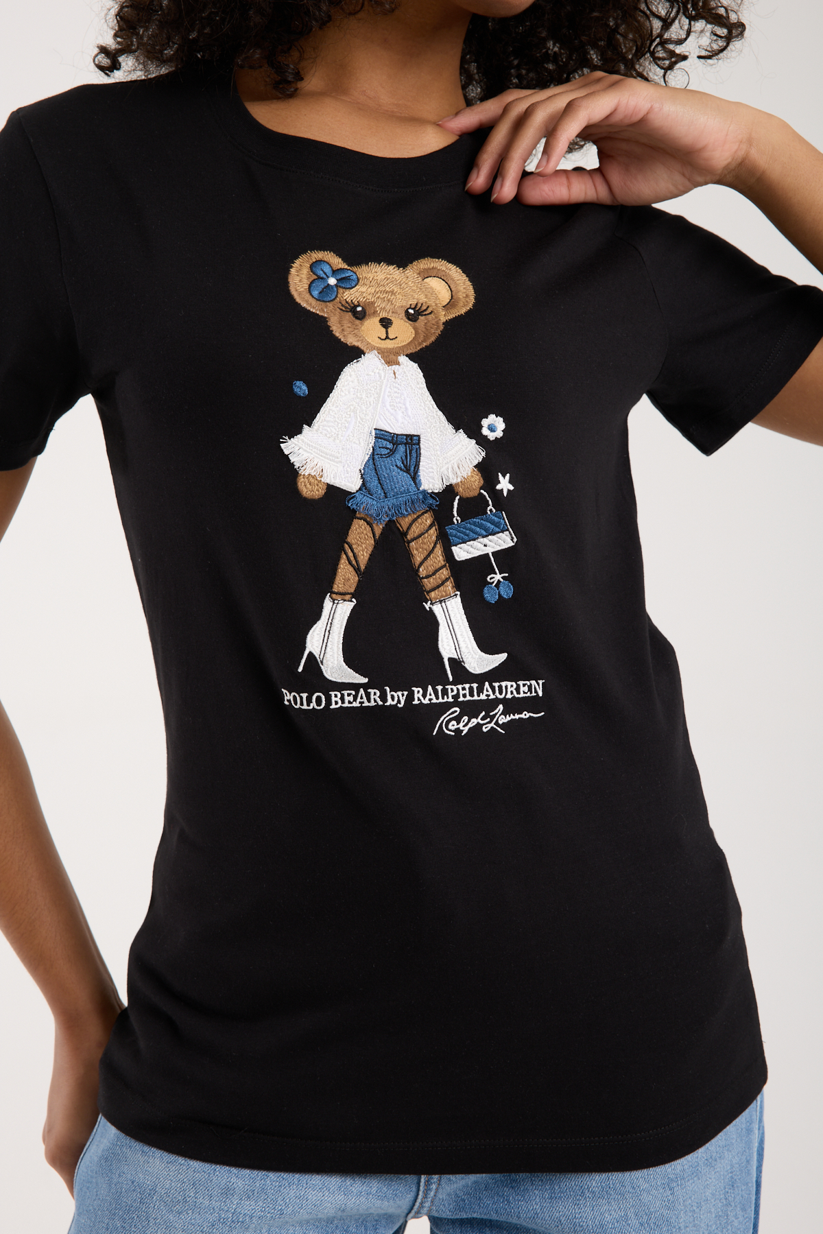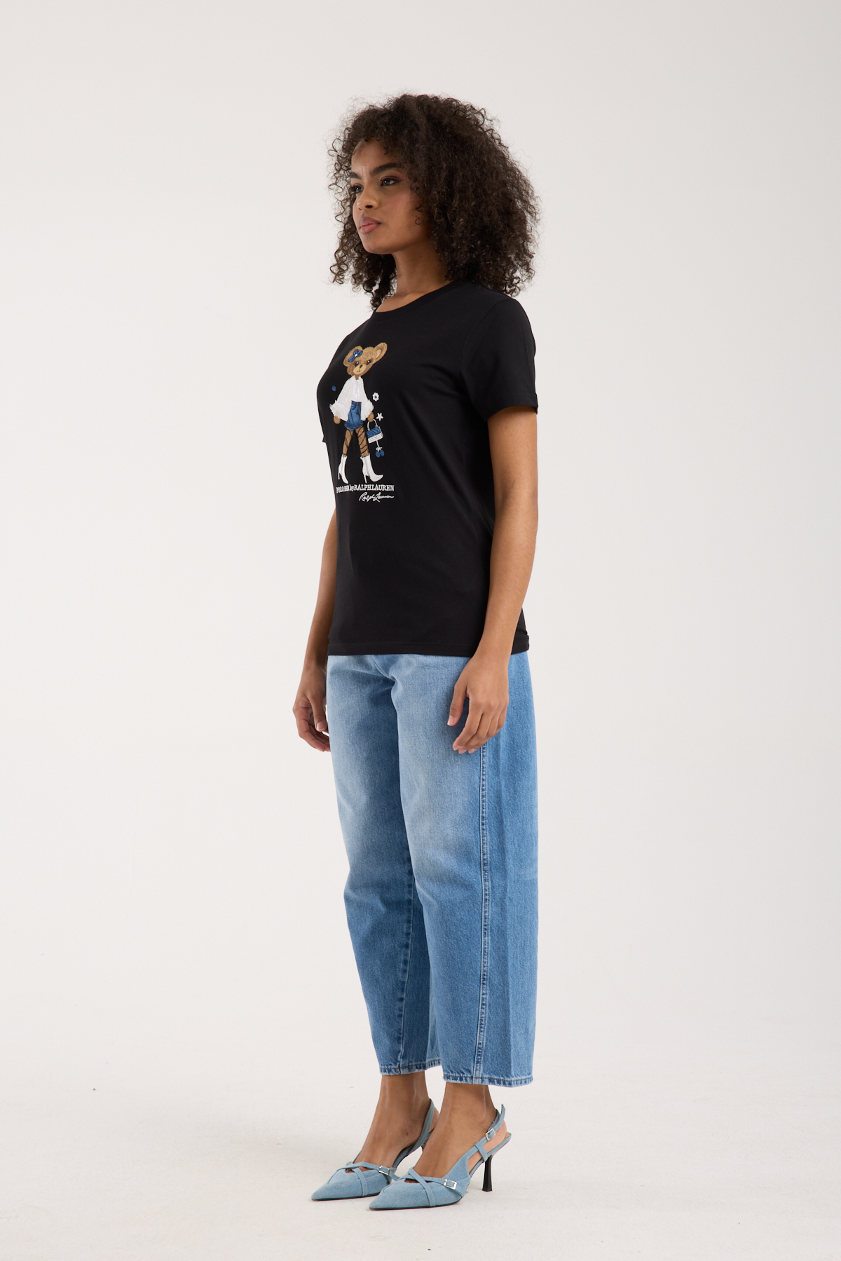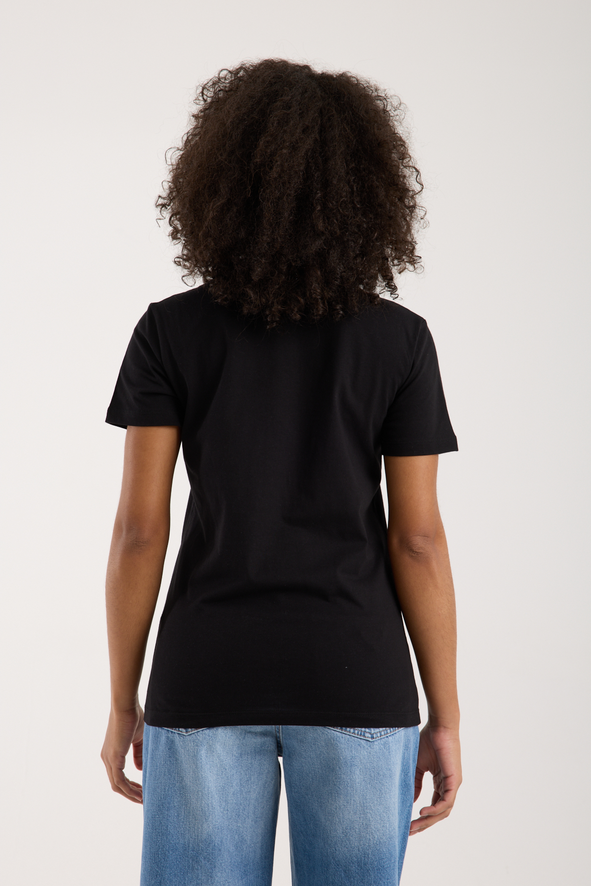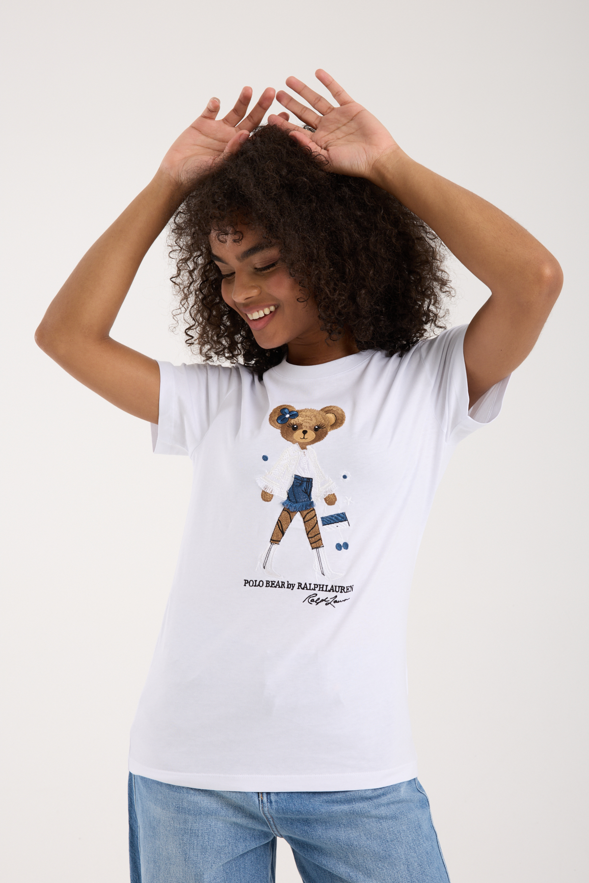 Bisiklet yaka, logo nakış işlemeli t-shirt.