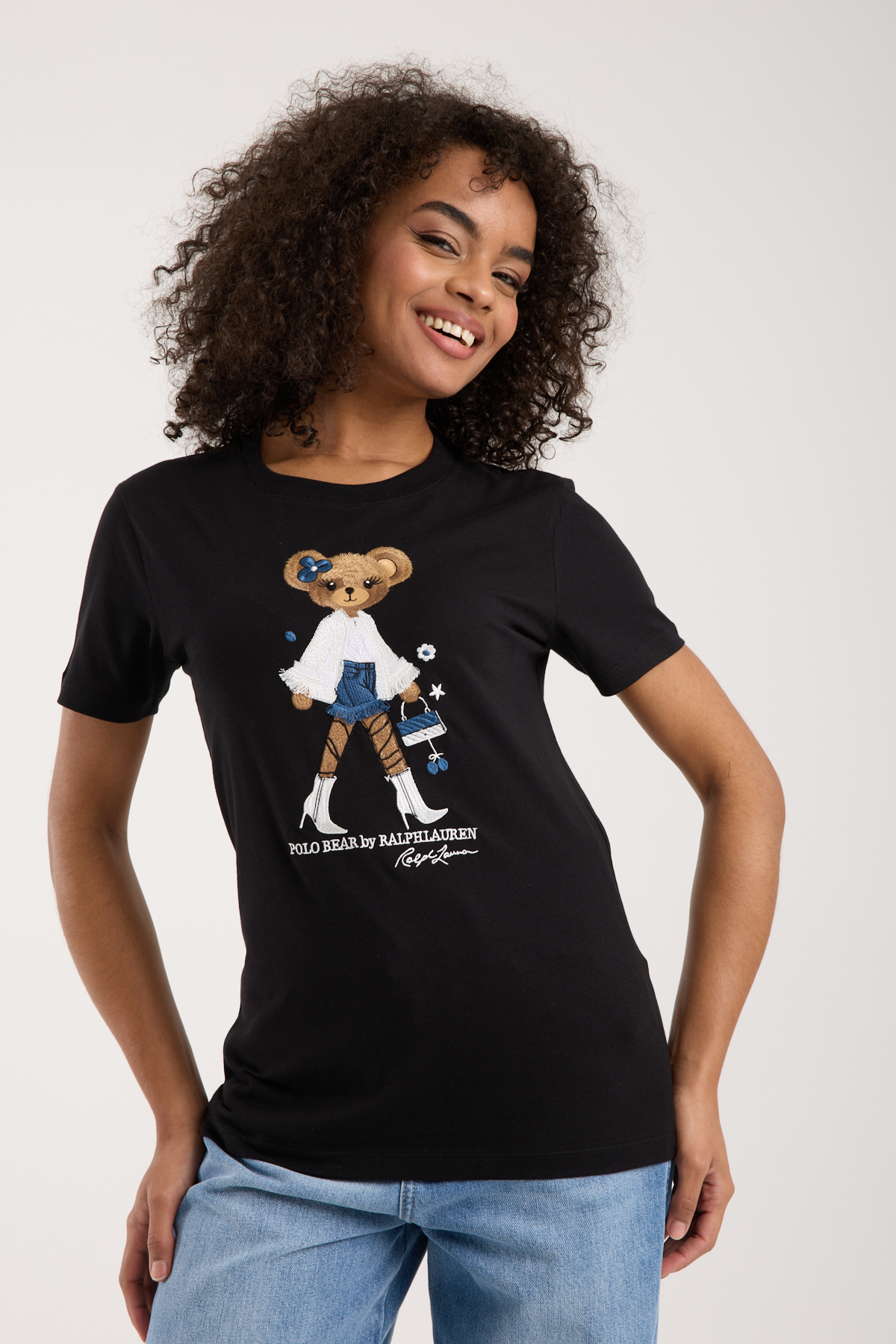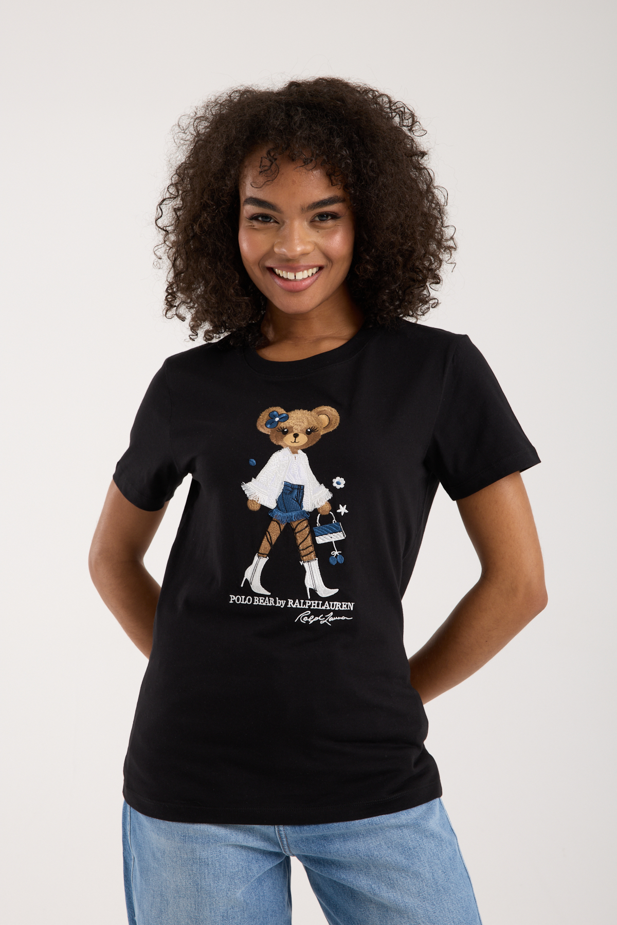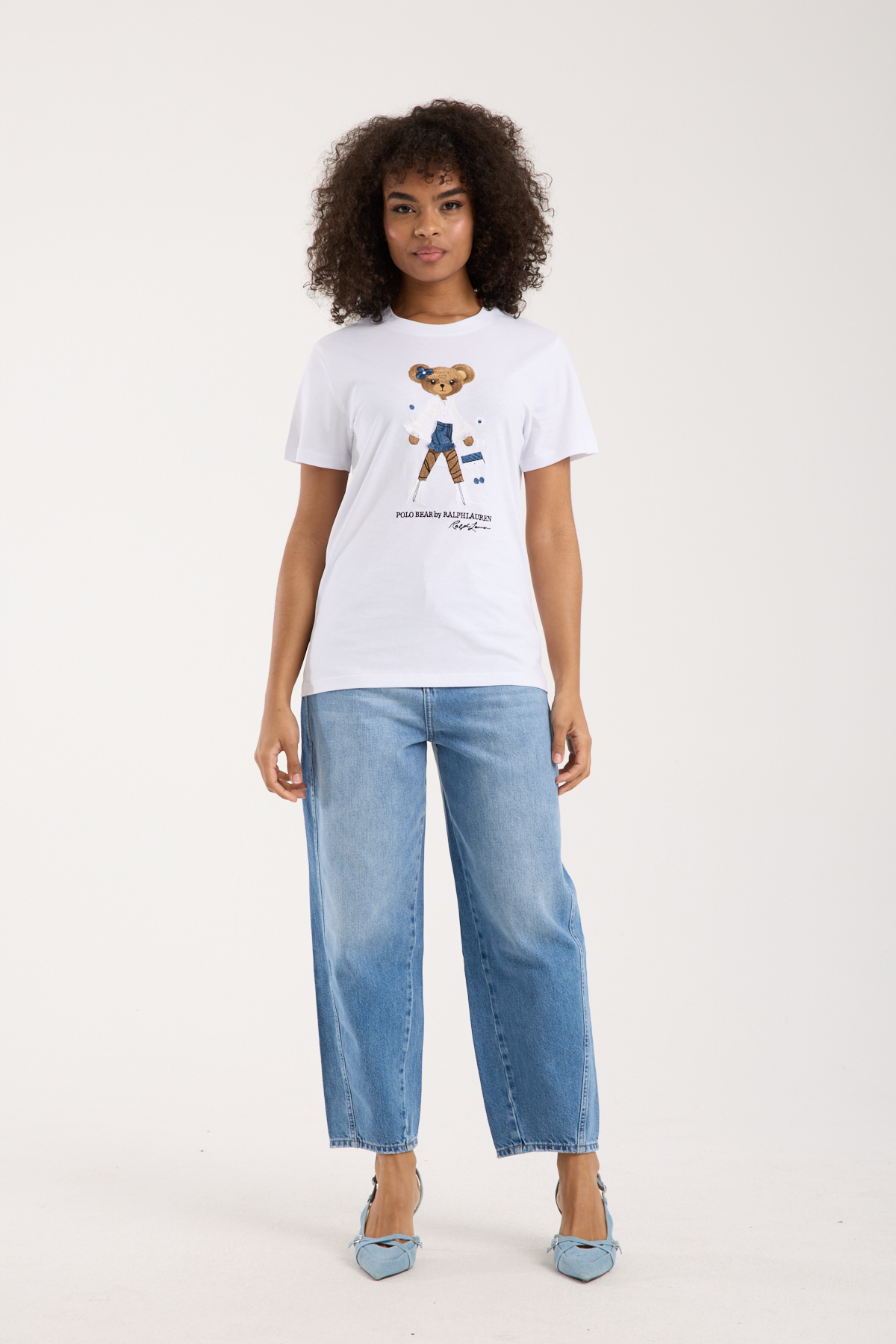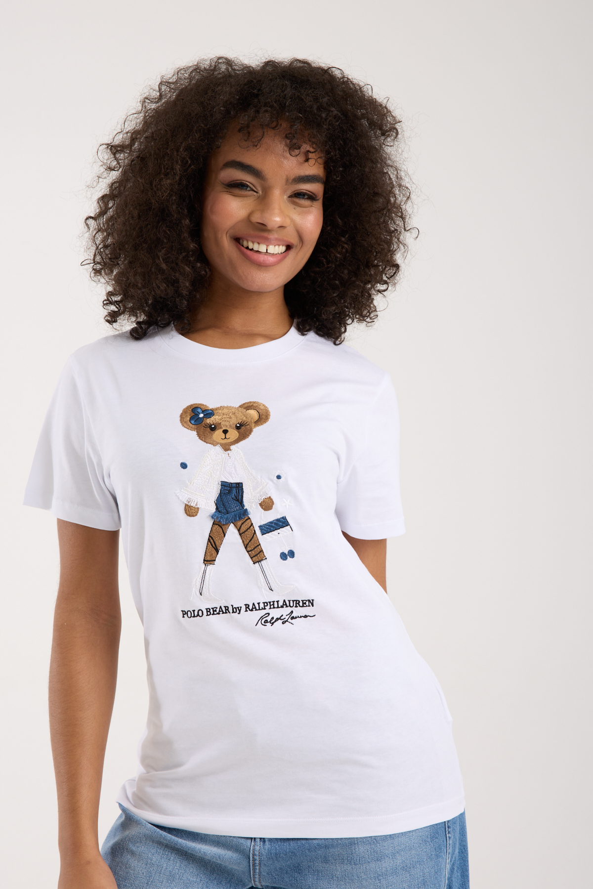 Bisiklet yaka, logo nakış işlemeli t-shirt.