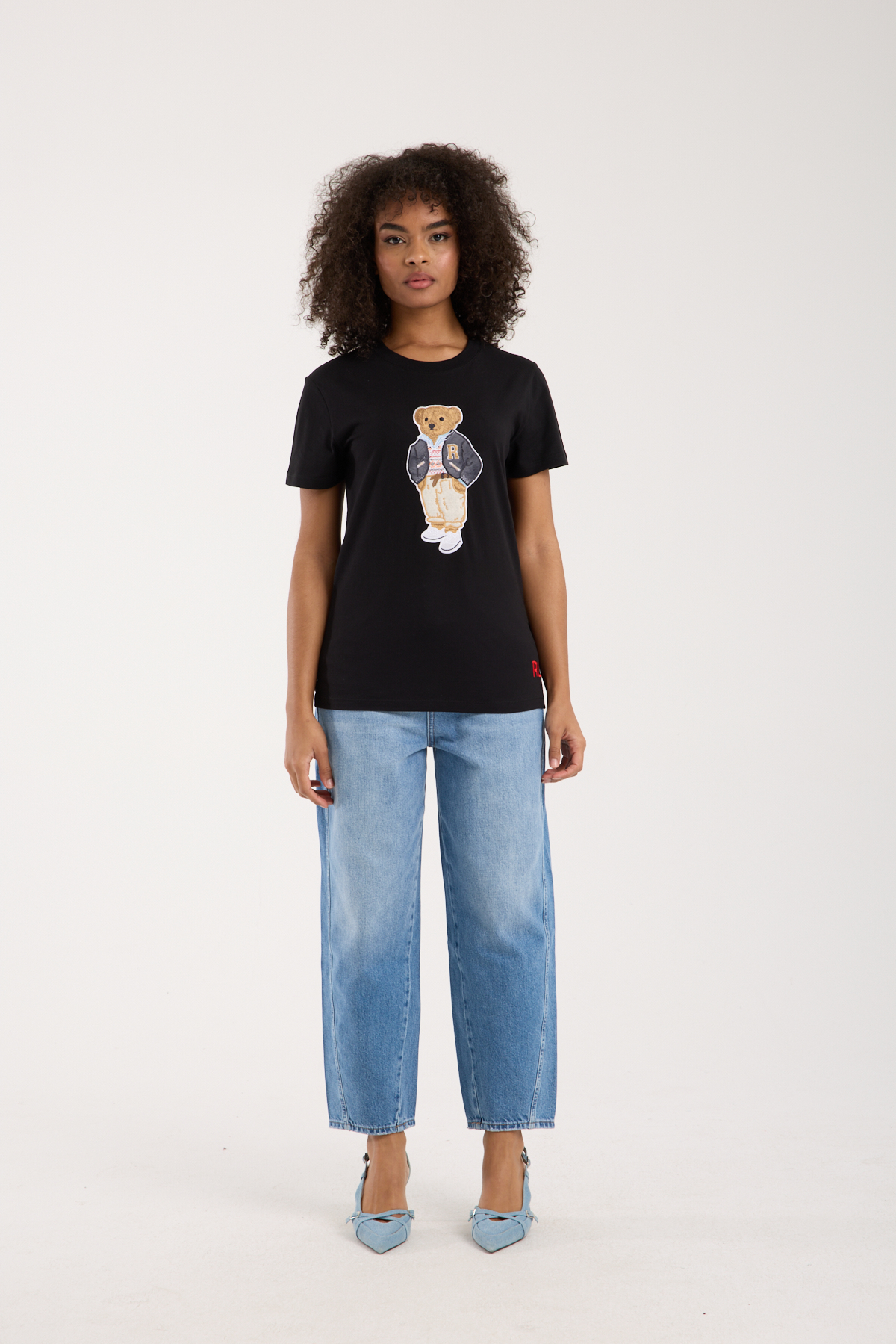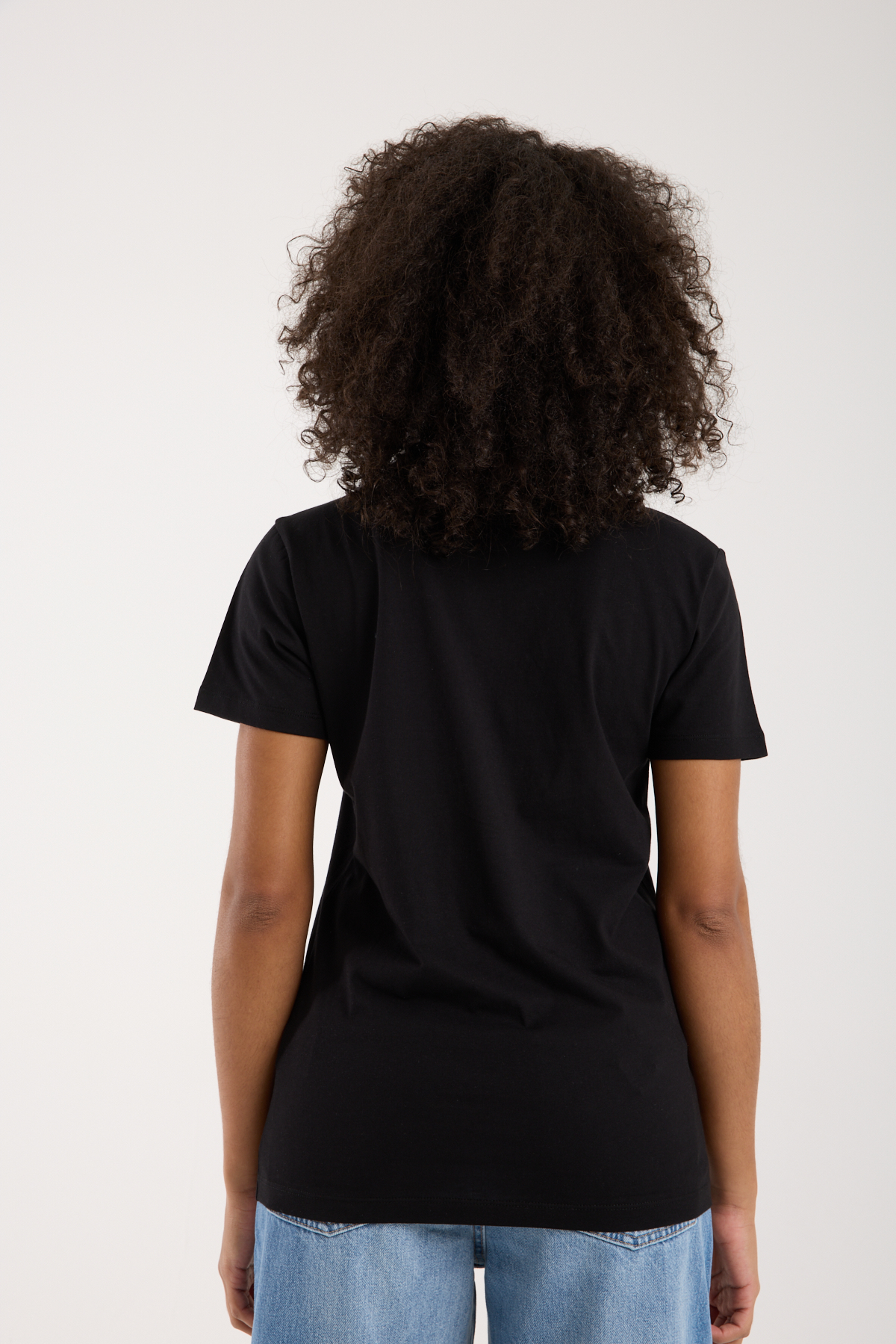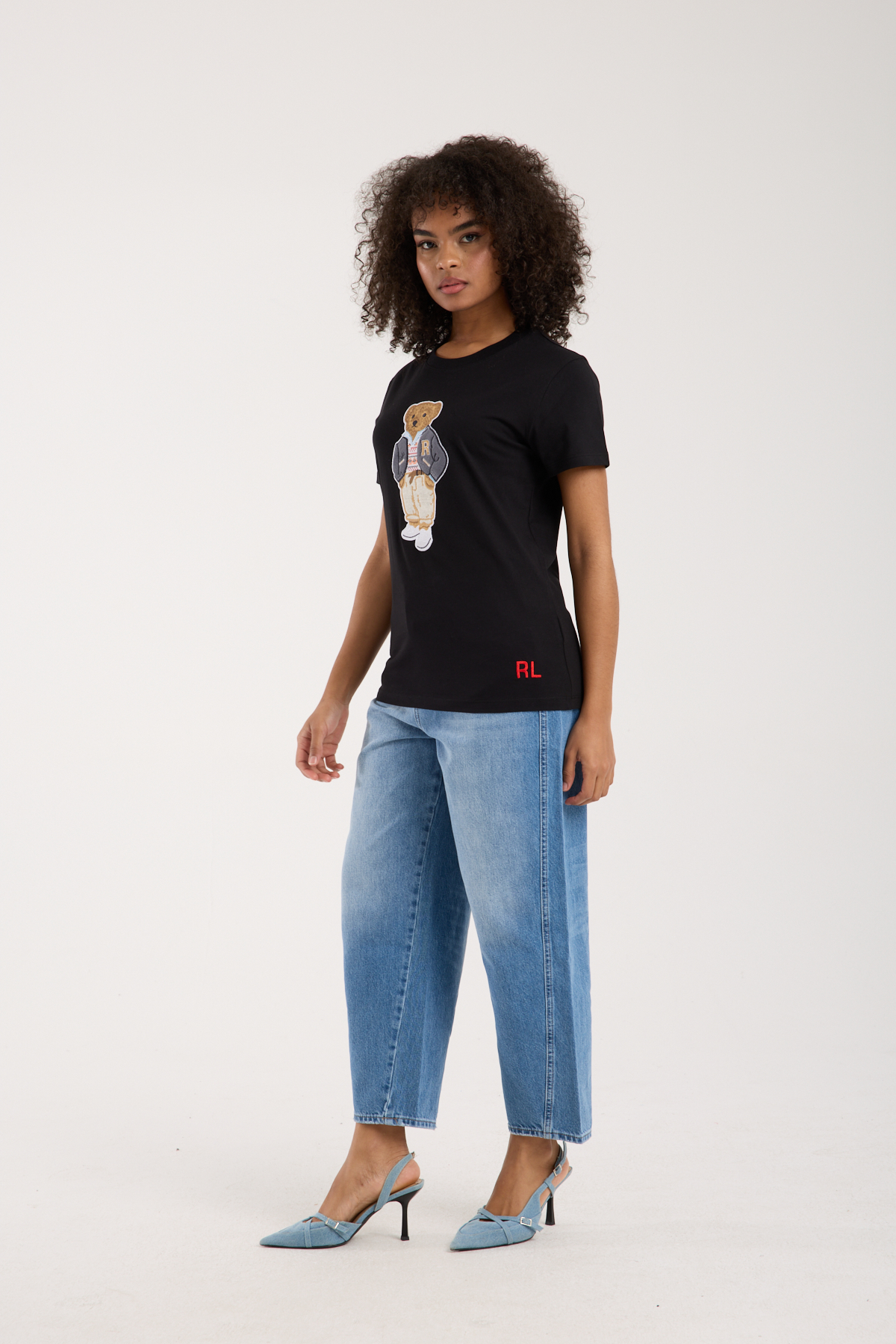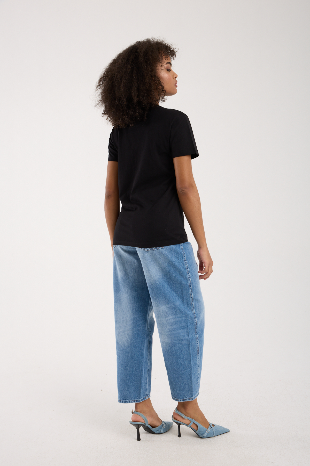 Bisiklet yaka, logo nakış işlemeli t-shirt.