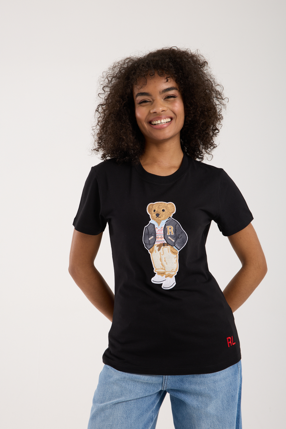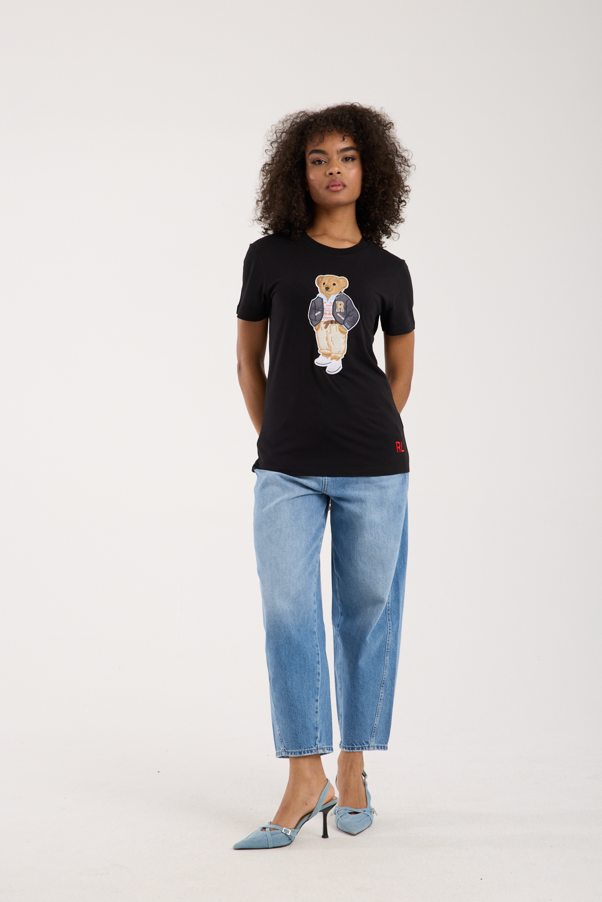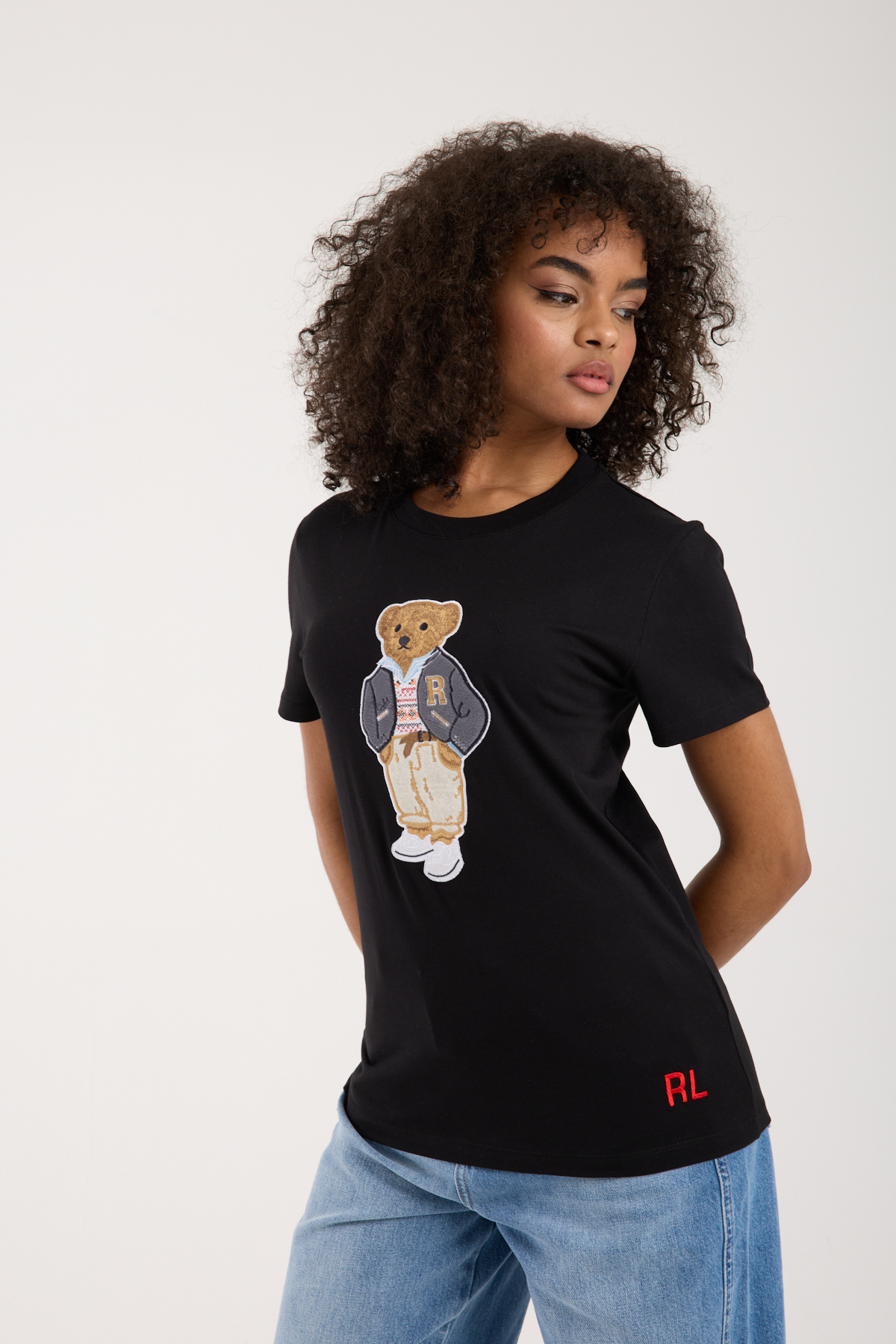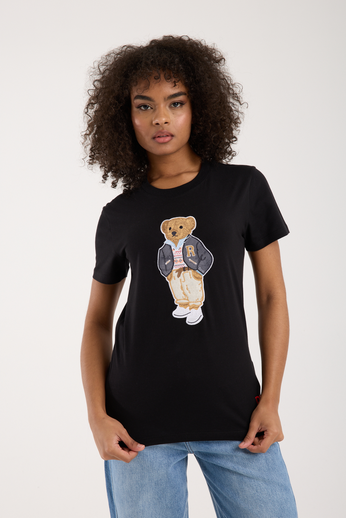 Bisiklet yaka, logo nakış işlemeli t-shirt.